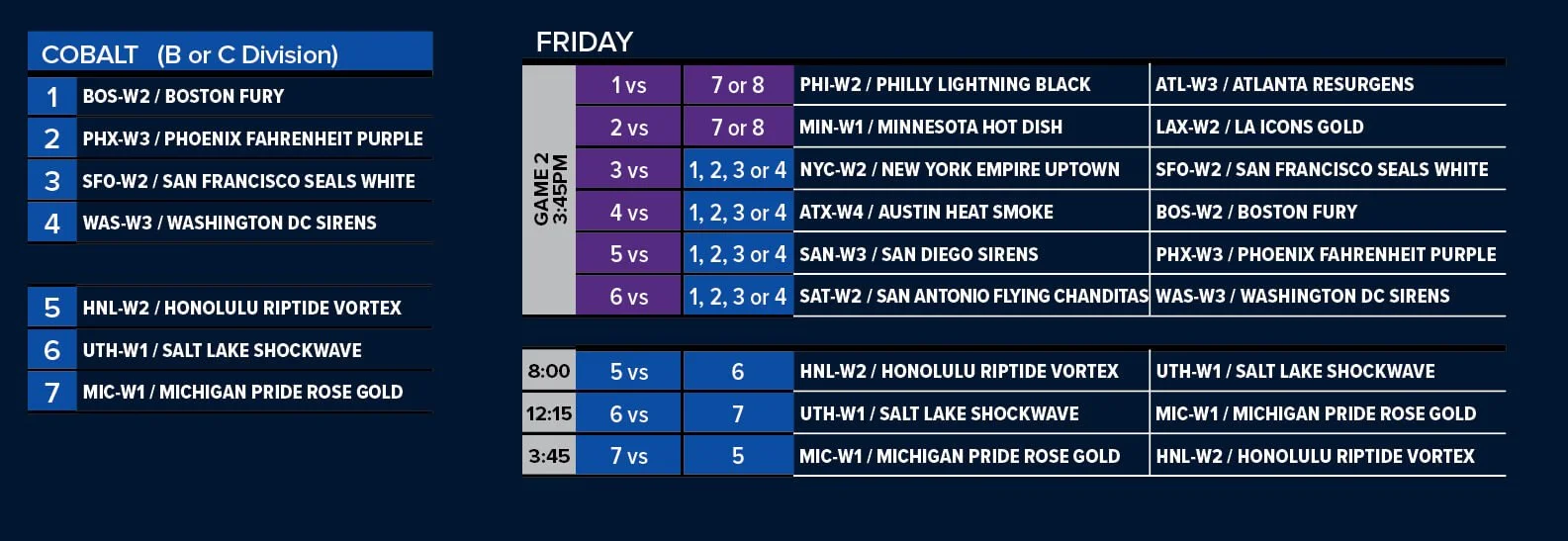 AFTER THE FIRST 2 GAMES, ALL TEAMS ARE RE-SEEDED.